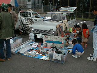 | お決まりの愛車の前でのフリーマーケット。 残念ながらZのおもちゃは無かったです。 |
