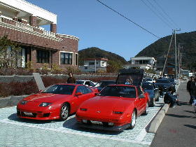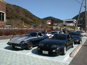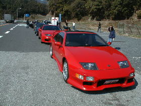 | ツーリングではどうしてもだんだんはぐれてしまいます。 道中途中で遅れた車を待ちます。 先頭は今回初お目見えの私のZ。 |