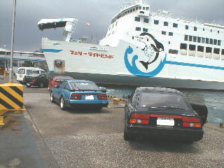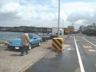 | HIRO.Fさんが船から降りてくる瞬間を写真に撮ろうと思ったらデジカメの電池切れで撮れず・・・。 取りあえず無事到着しました。 (1番後ろの130がそうです。。) この後5人で昼食をとり、H/K AGESのお二人は九州初ライブを。。 すんません私は用があって帰りました。 会長は阿蘇に出発。 |