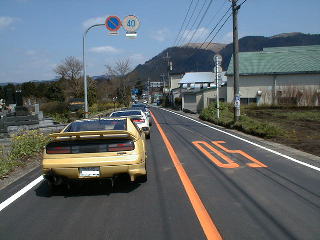 | 案の定、Z渋滞をおこしました。 後ろのコンバチの人は信号待ちの間に屋根を開けてました。 天気がいいから気持ちいいだろうなぁ。 |