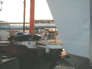 | 今、まさに船が着く瞬間。 お迎えには私と会長とネットでHIRO.Fさんとお付き合いのあるけんけんさんの3人が来ました。 |