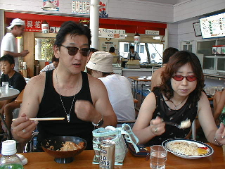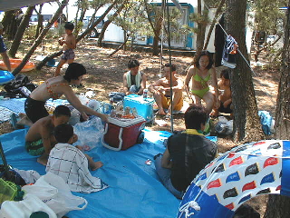 | ちょっとシーンが飛びますけど、一泳ぎした後の昼食です。 |