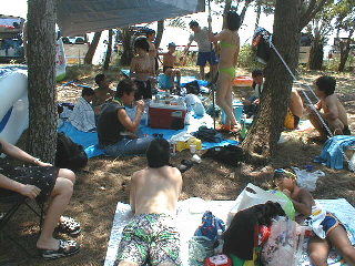 みんなも水着に着替え準備完了! 泳がない人はひたすらここで飲みまくりました。 |