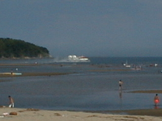 このときビックリしたのがホバークラフトの登場。 普段は大分市と大分空港を定期便でむすんでいるだけです。 海岸で人を乗せていました。 |