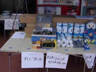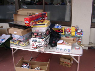 | こちらが協賛品の豪華な品の数々。。 タワーバーからレアなミニカーまでいろいろ。 |