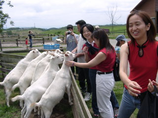 | 動物とふれあうコーナーもあります。 山羊と羊がメインで、あとはアヒルとガチョウとコリー犬が少々。 乗馬もできるみたいです。 |