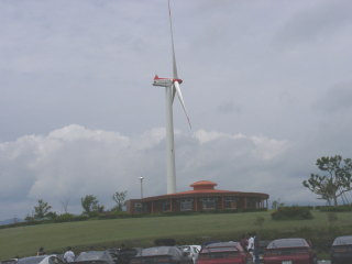 風力発電の風車。 風がなくても回ってたような気がするのだが、多分上空は風が強いのでしょうということで・・・。 |