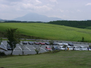 駐車場の風景。 まわりは緑だらけでこの時期の阿蘇はホント気持ちいいです。 |