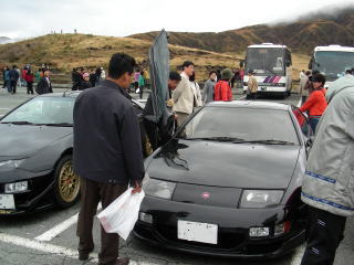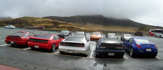 | そうそう、合同ツーリング中止の連絡が遅くなり、知らずに現地まで先に来ていたうちのメンバー(白)とそのお友達の2台のZ31とも無事合流。 やっぱ草千里まで来ておいて良かった・・・。 |