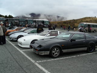 前回ここに来た時もそうだったんですが、草千里は韓国の観光客が多く、いや、、多いのは構わないのですが、何故か皆さんZに肘や手をついて自分の車の様に写真を撮ります。 それが若者だけではないんですよ。 老若男女みんなが撮っていきます。 特にハデなZ32の人気は高く、ドアを上にあげようものならワラワラと寄ってきますカムサハムニダ。 |