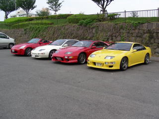 私は昼過ぎに帰ったので、ラストにヴェイルサイドのエアロをまとった3台で記念写真を撮りました。 左が100号(大分Zeal) 真ん中が穀蔵院=ヒデ=龍神斎号(宮崎Zephyr) 右がむらっち号(福岡Zeus) |