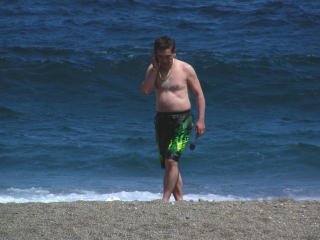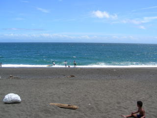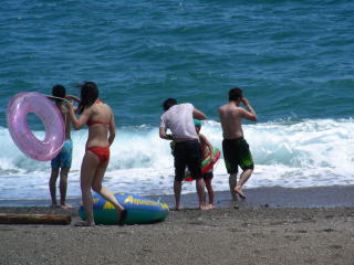 実はこの日は強風で波が高く、泳ぐのには少々危険でした。 波が打ち寄せるすぐ先は急に深くなっており、波にのまれること請け合いです。 |