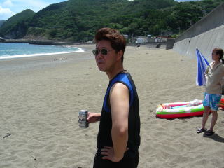 | 意味が分らない写真で海水浴は終了して、熊本組長一家が大分市内にお泊まりということなので夜は元副会長のお店で急きょ宴会を開催。 現副会長の青銀マンハッタンさんファミリーも来て頂きました。 携帯で撮ったので画像が荒くてスミマセン。 |