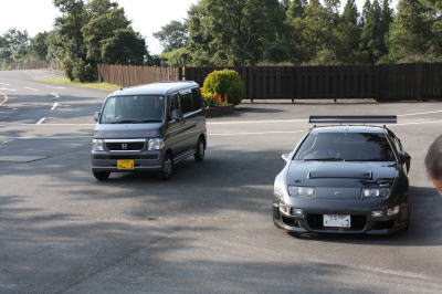 | メンバーkazkinさんと合流。 ついでに今日のミーティングに参加する為に偶然通りかかったCR−Xのオーナーズクラブ「ROCKET'S」のメンバー1人とも合流。 バモスだけど・・・。 ちなみにこのオーナーさん、CR−X時代に産山でZミーティングをしている時にやはり偶然居合わせています。 |