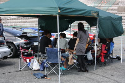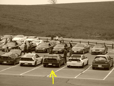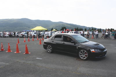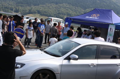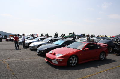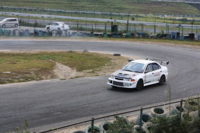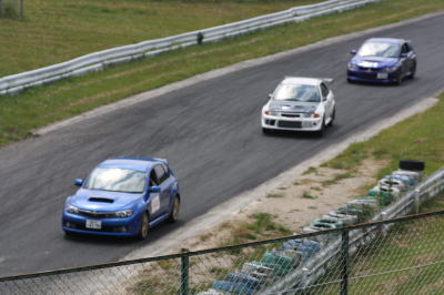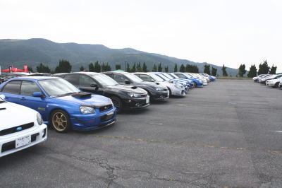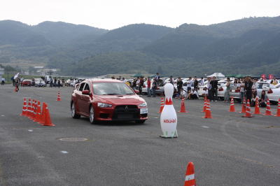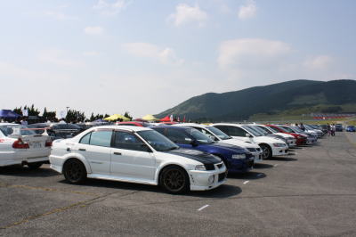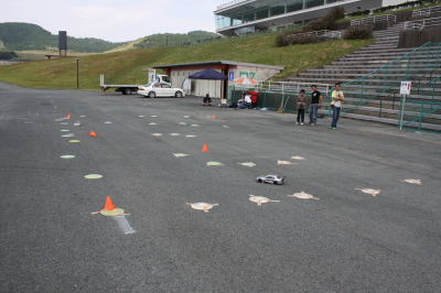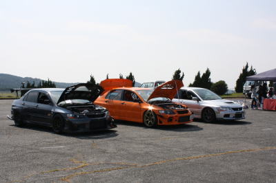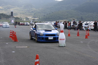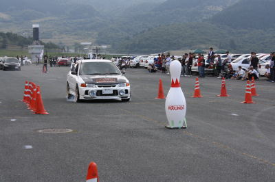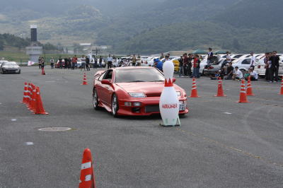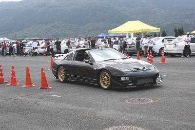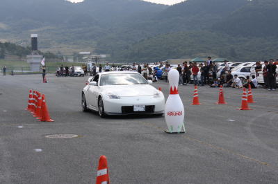 | 開会式のあとは、Zvsランエボvsインプレッサによるゲーム。 まずは車庫入れ対決! |