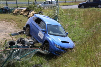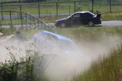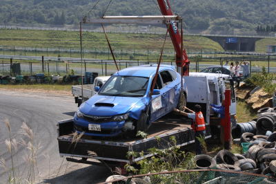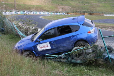 ここでアクシデント発生! ちょっと熱くなりすぎてオーバーラン。 ドライバー、体験同乗者ともに怪我がなくて良かったです。 |