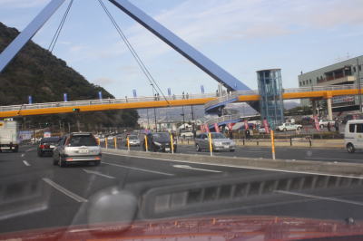 | 今日は別大マラソンの開催日。 スタート地点のうみたまご。 昼頃に交通規制で通れなくなります。 その前に通過。 |