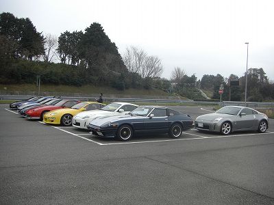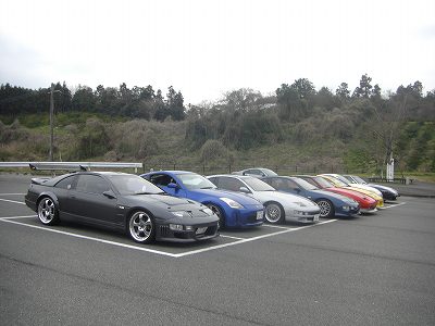 空港道路の相原PA。 ここで2台合流し、全部で9台揃いました。 |