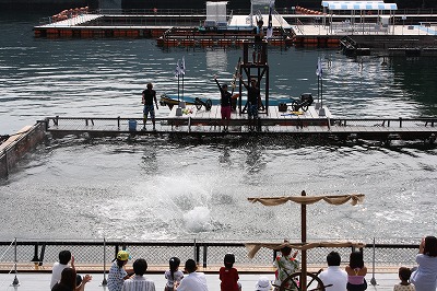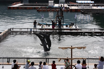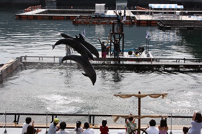 | クルージングも終わっていよいよイルカのショー。 | ![]() |