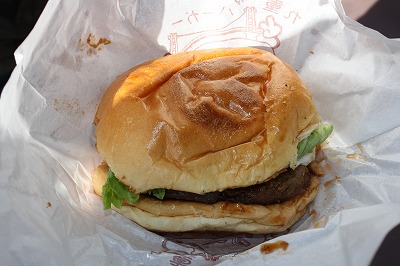 | これはちゃっかり頂きました。 名物「九重夢バーガー」 |
