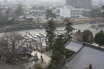 | 天守閣から見た駐車場。 |