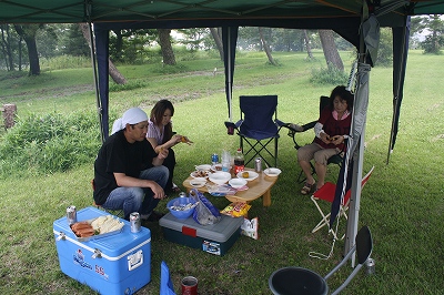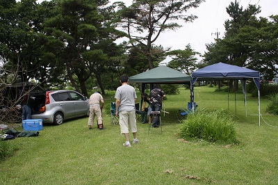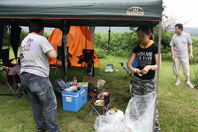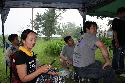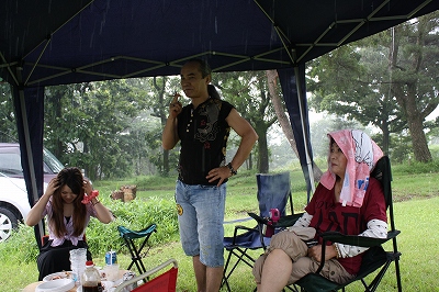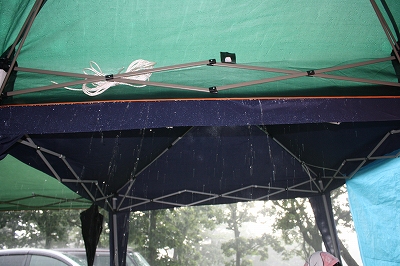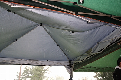 このテントは不思議と雨がミスト状になって下におちてきました。 そんな感じで、急な雨のおかげで〆の写真も撮らずに終了。 |