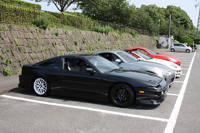 | 会長は愛車の調子が悪いってことで、代車の180SXで参加です。 ガチガチやんw |