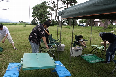 | しかし、スタート直後に雨が降ったりやんだり。 いや、ほぼ降ってた・・・。 なんで、カメラを濡らしたくないので画像はここで終了。 この後、小降りになった隙に片付けをして撤収しました。 |