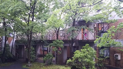 | 宿泊はここ、くじゅう倶楽部の1号館。 ちなみに私は仕事だったので、出発時の画像がありません。 夕方直接ここに来ました。 |