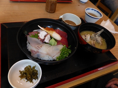 店の名前忘れたけど、志賀島の食堂で昼食タイム。 海鮮丼が人気らしい。 |